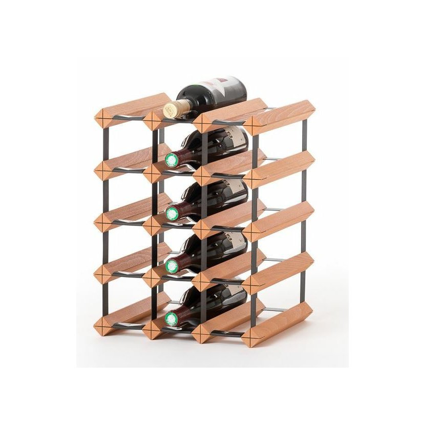 Dřevěný stojan na 15 lahví (buk), vhodný do interiérů - kuchyně, obývací pokoje. 3x5 lahní na stojato.
